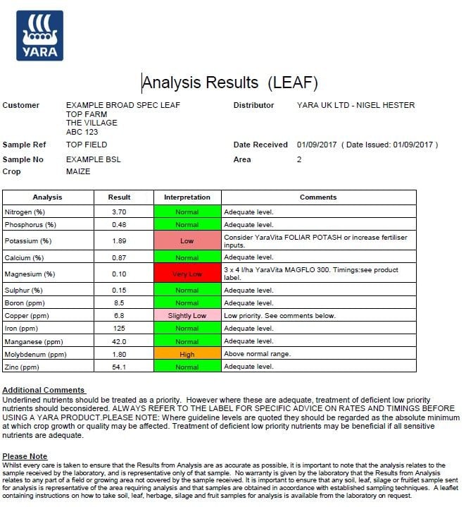 When the maize crop is growing undertake a Broad Spectrum leaf analysis.