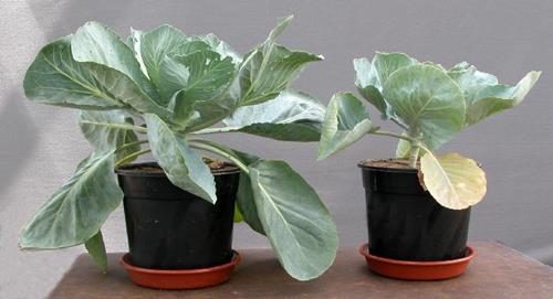 With nitrogen deficiency the foliage becomes yellowish-green (chlorotic). The symptoms start from the older leaves and after a while the whole plant becomes chlorotic, some leaf parts may have a reddish or orange flush.