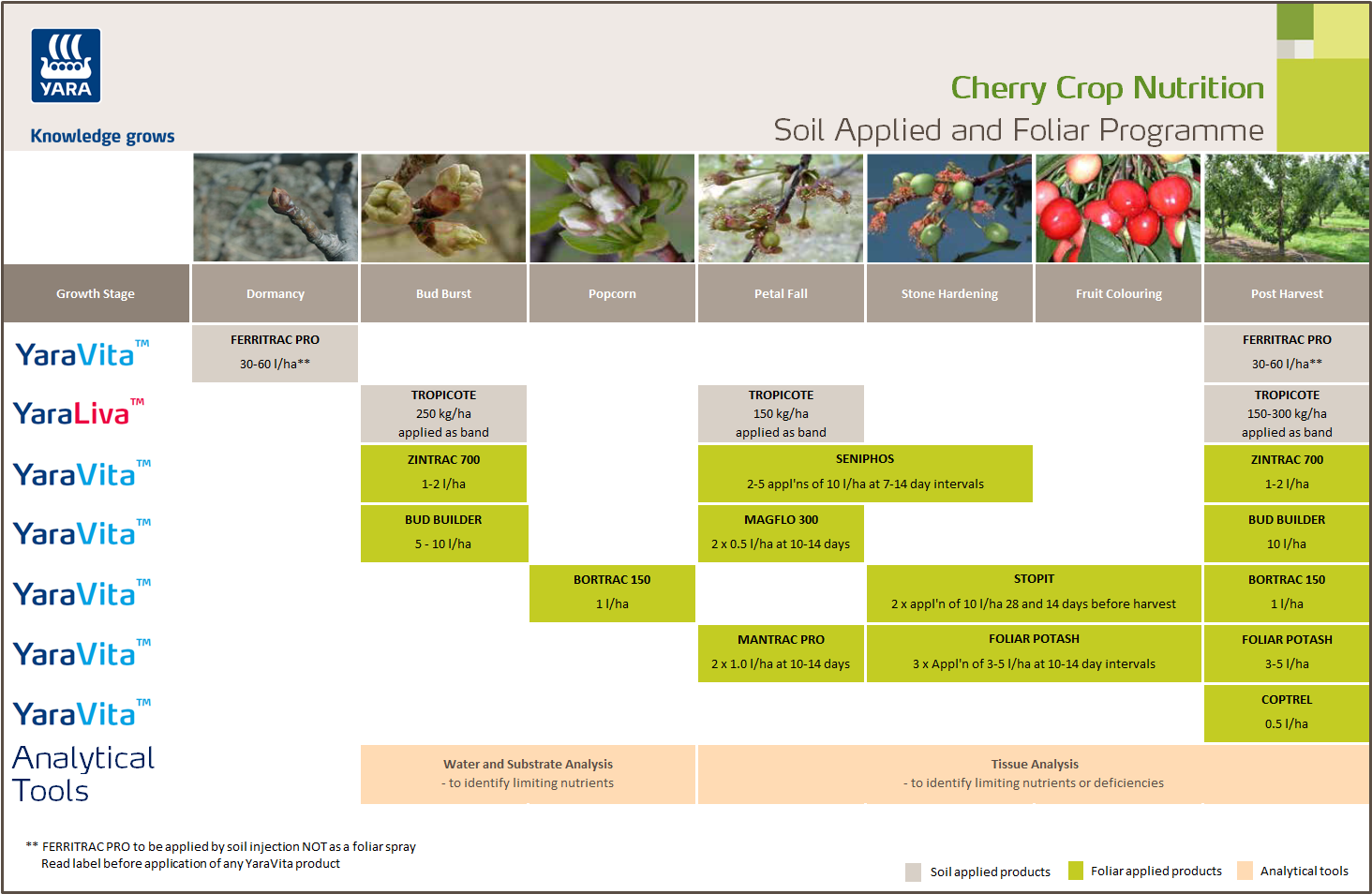 Yara's crop nutrition programmes can help you to achieve excellent crop performance and maximise the yield and quality of your cherries.