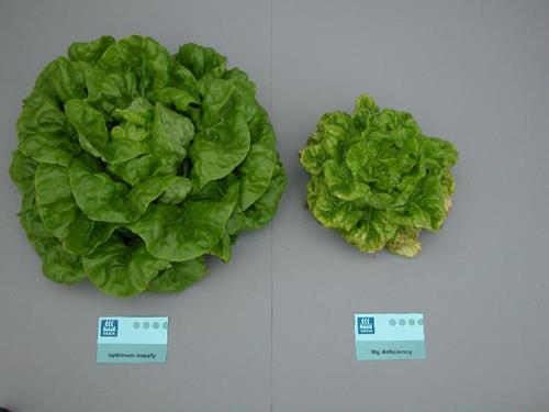 Severe magnesium deficiency (right) compared to optimum supply (left)