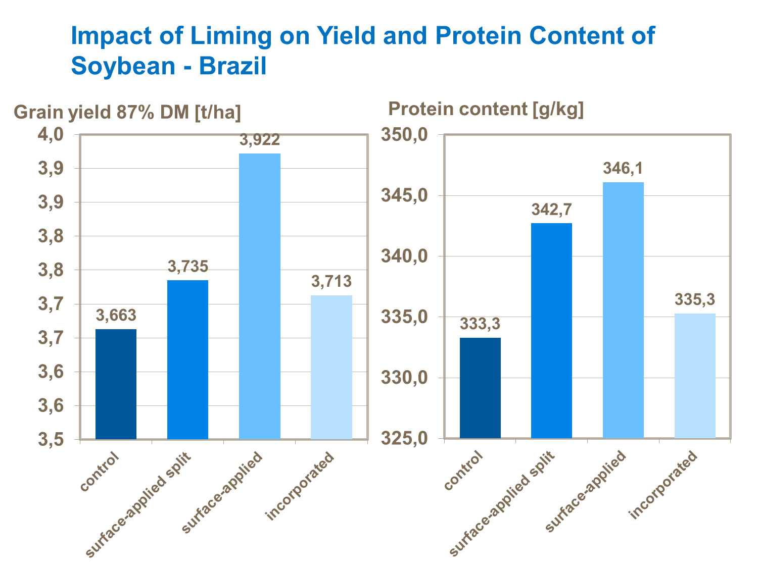 In Brazil, increases of soybeans yield in limed soils has been observed as a result of the pH increases, reduction of Al and Mn toxicity, increased absorption of N, P, K and S, and the supply of Ca and Mg.