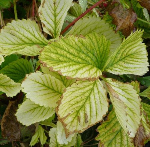 Severe iron deficiency on leaves