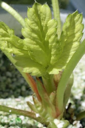 Symptoms always start on youngest leaves with yellow or pale yellow intercostal chlorosis. With ongoing deficiency also veins turn yellow and necrotic areas appear on leaf margins and spread over whole leaves.