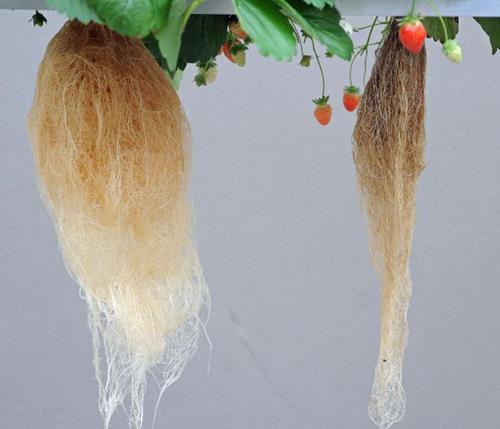 Roots show a dull, dark brown discoloration. Their growth is poor.