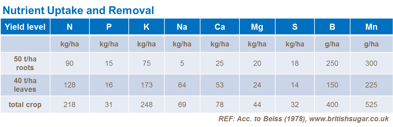 As potential beet yields and thus nutrient removal figures vary between sites and seasons it is appropriate to express nutrient removal on a standard basis.
