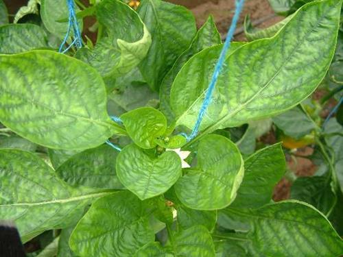 Interveinal areas of young leaves become chlorotic, while even the small the veins remain dark green.
