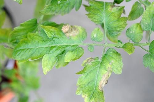 Similar symptoms can be found when the tomato plants are grown at too low temperatures since phosphorus uptake is inhibited under these conditions.